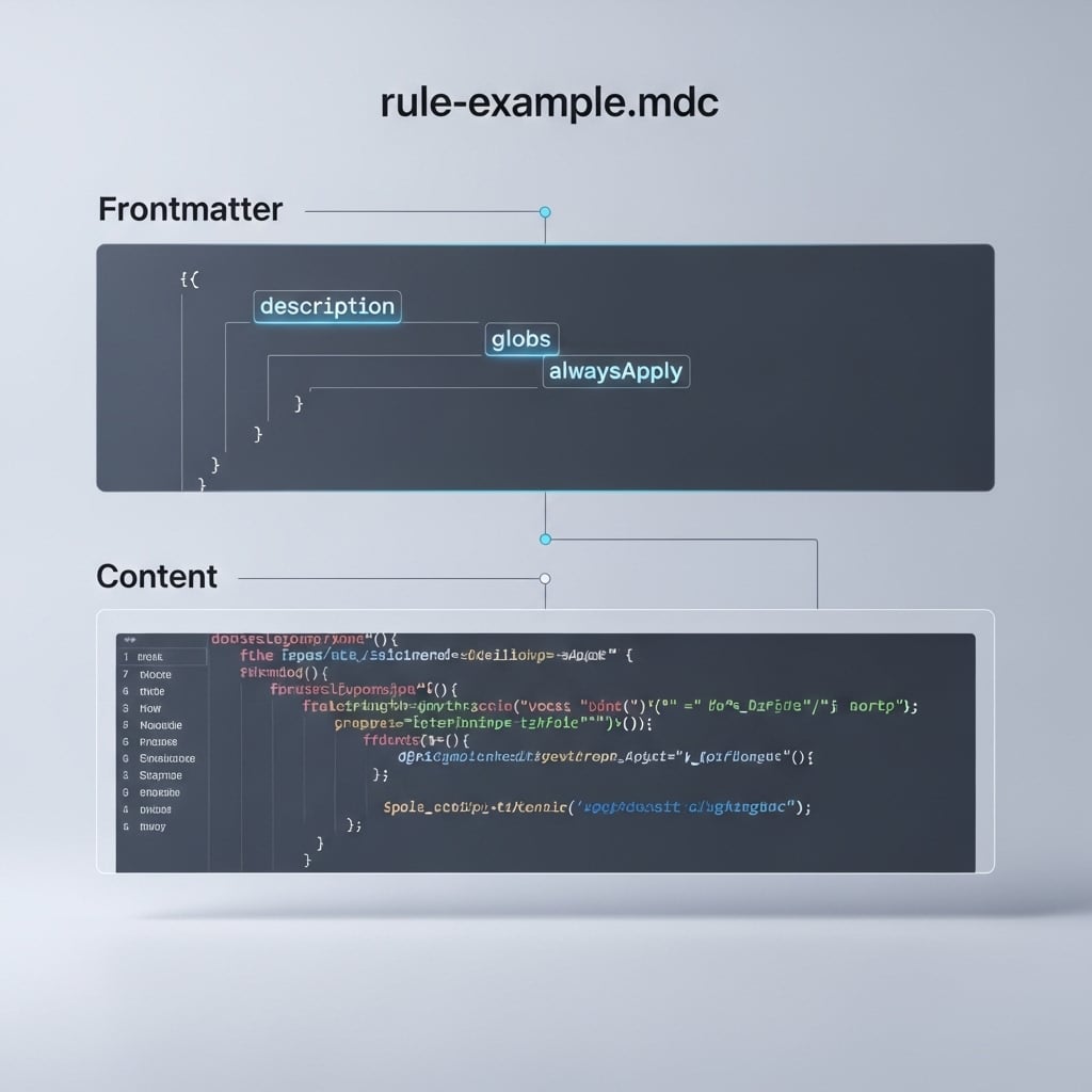 Cada regla se escribe en un archivo con extensión .mdc (Markdown with Components). Es básicamente un archivo de Markdown con una pequeña sección de metadatos al principio. La estructura es sencilla y poderosa.